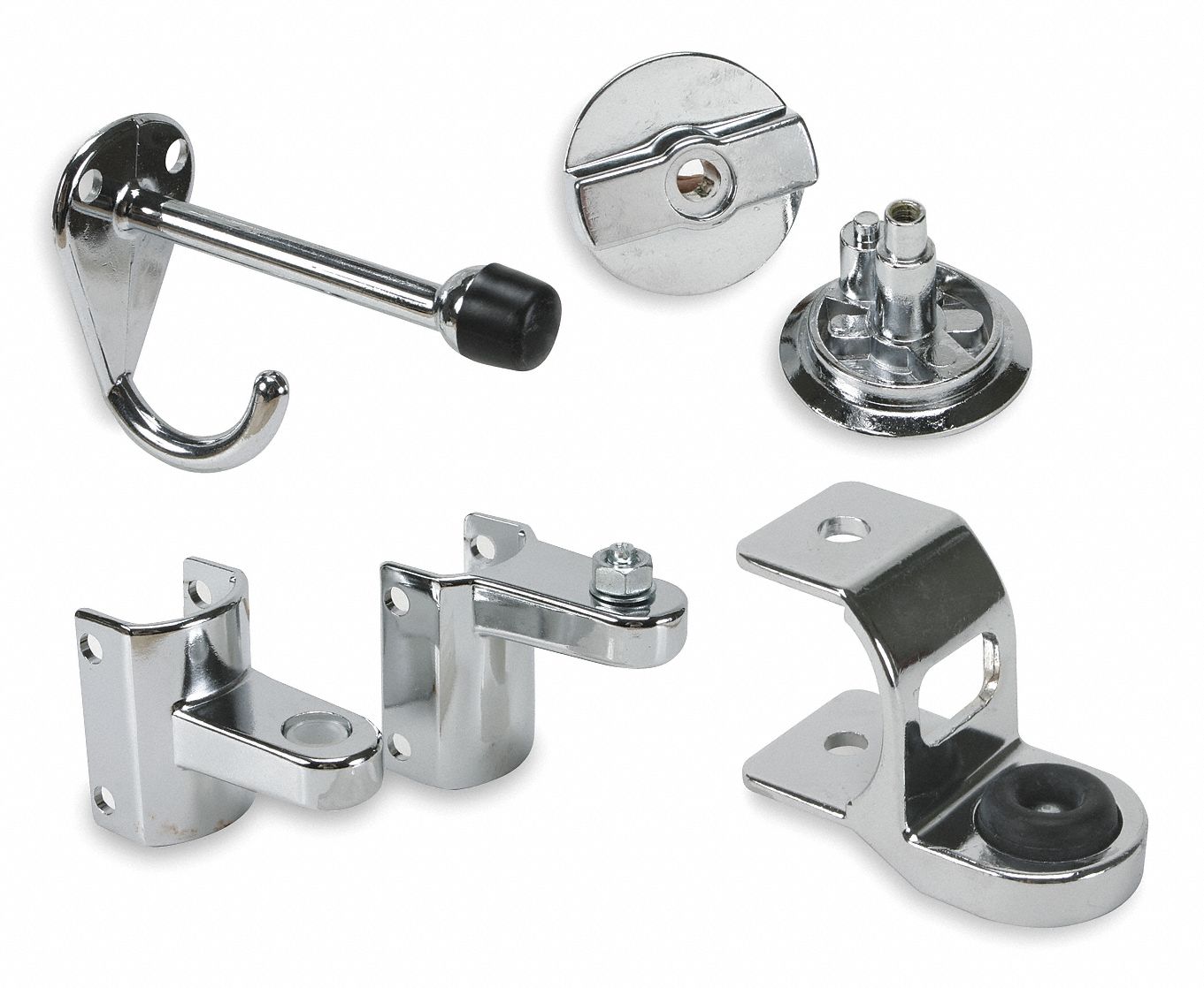 Replacement hinges door hardware brackets handles fasteners and latches for restroom partitions.