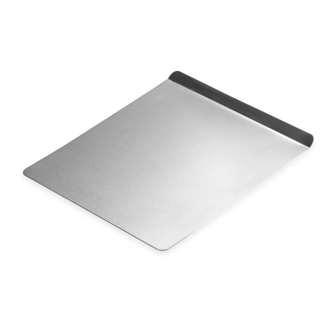 This 18 0 stainless cookie sheet is available in 12 by 16 inch or 14 by 12 inch sizes.